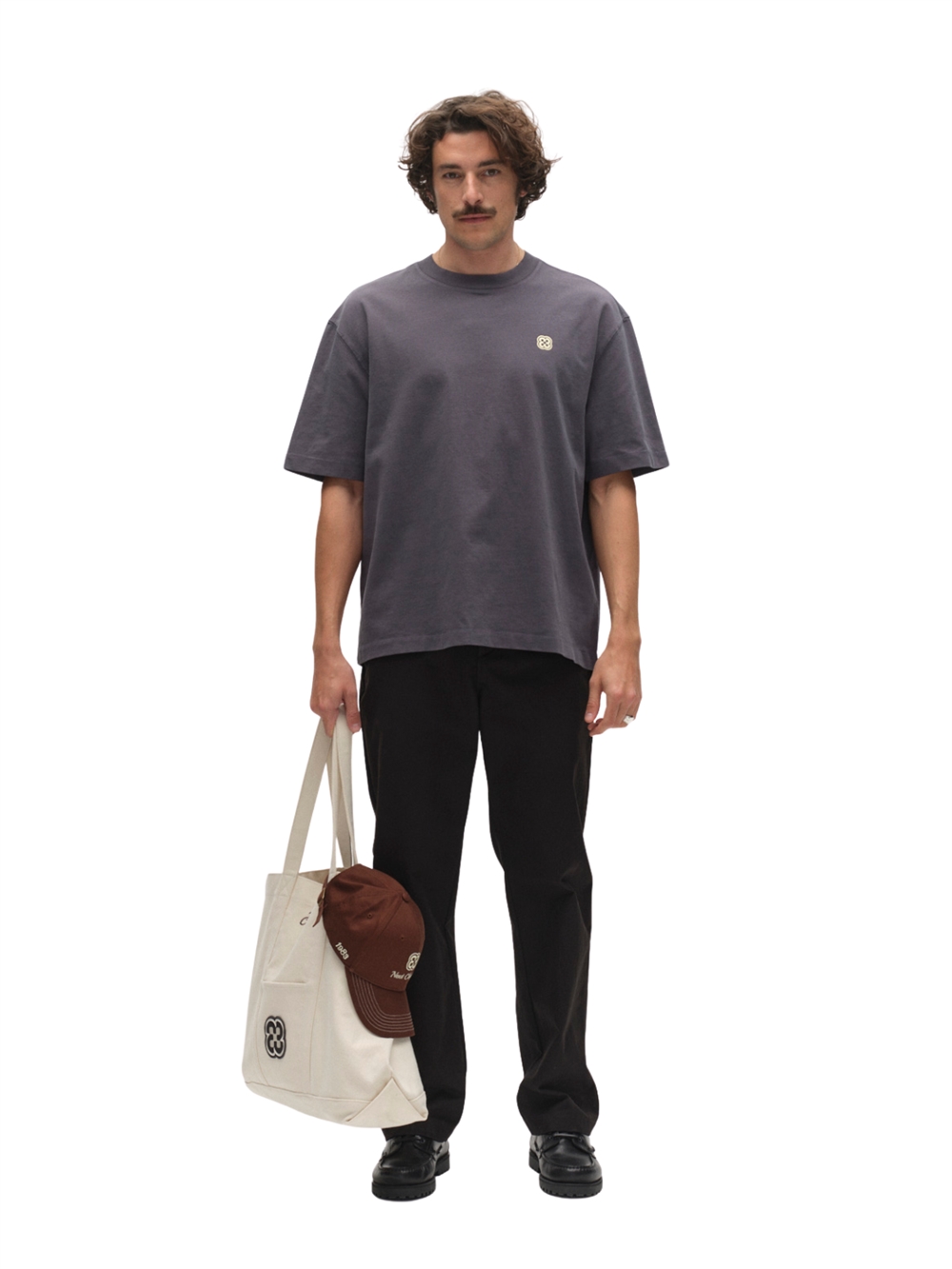 Afslappet, firkantet t-shirt med et markant print på ryggen, der giver et grafisk statement. Designet med en let cropped krop og forlænget skulderlinje, giver den en selvsikker, moderne silhuet, samtidig med at den bevarer en ubesværet følelse. Lavet af kraftig bomuld med en fast fornemmelse, der giver den struktur og en førsteklasses finish fra dag ét.
