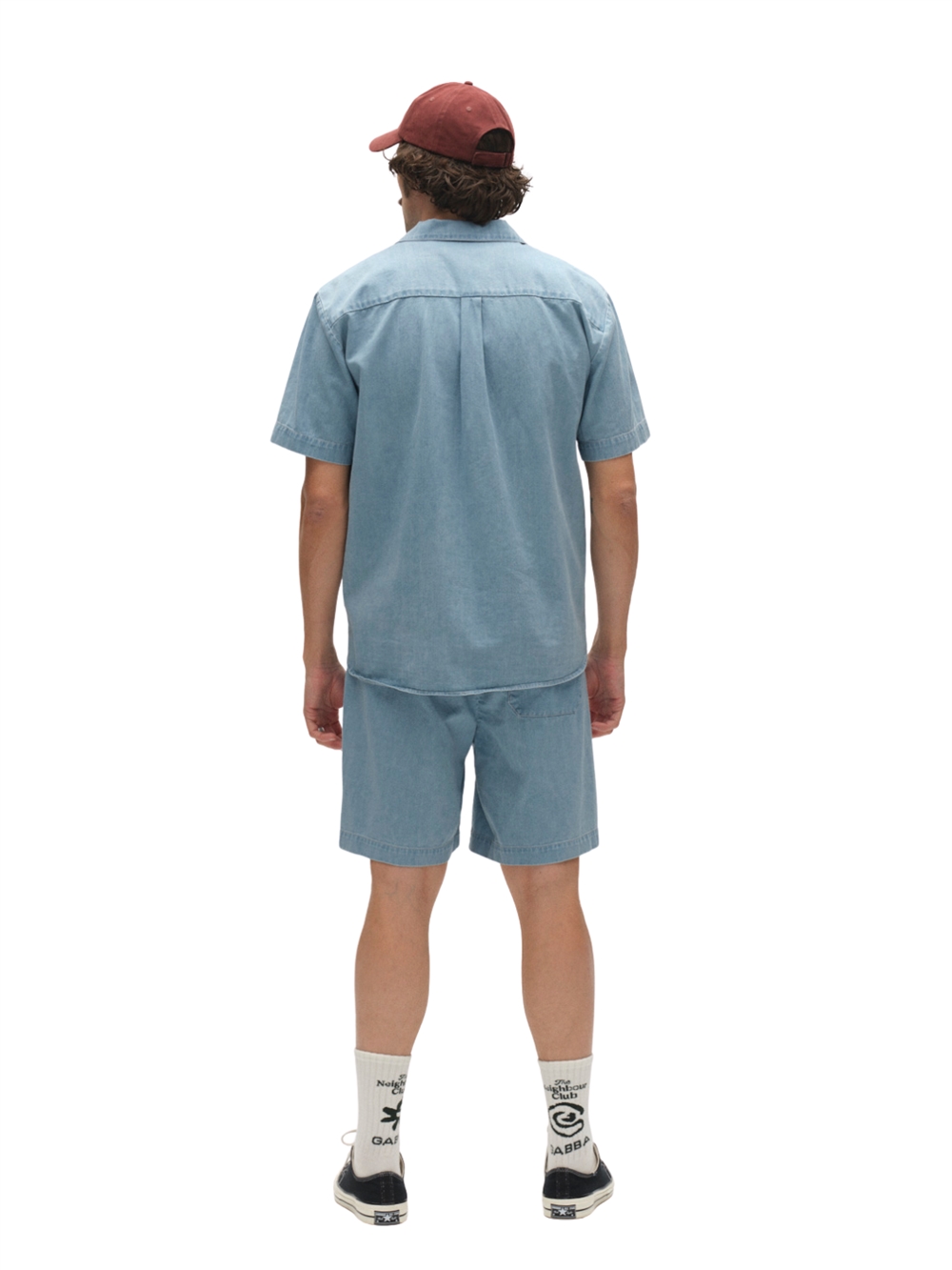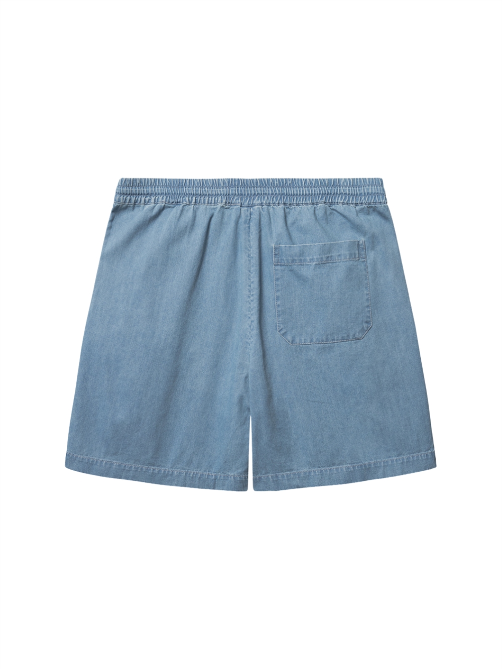 Tommi denim shorts er designet i en regulær pasform, der tilbyder en afslappet og behagelig form til nem hverdagsbrug. Disse shorts er fremstillet af let og blød slubdenim og har en naturlig tekstur og en åndbar fornemmelse. Den elastiske linning med indvendige snørebånd sikrer en brugerdefinerbar og sikker pasform, mens sidelommer og en enkelt baglomme tilføjer praktisk funktionalitet til en afslappet stil.