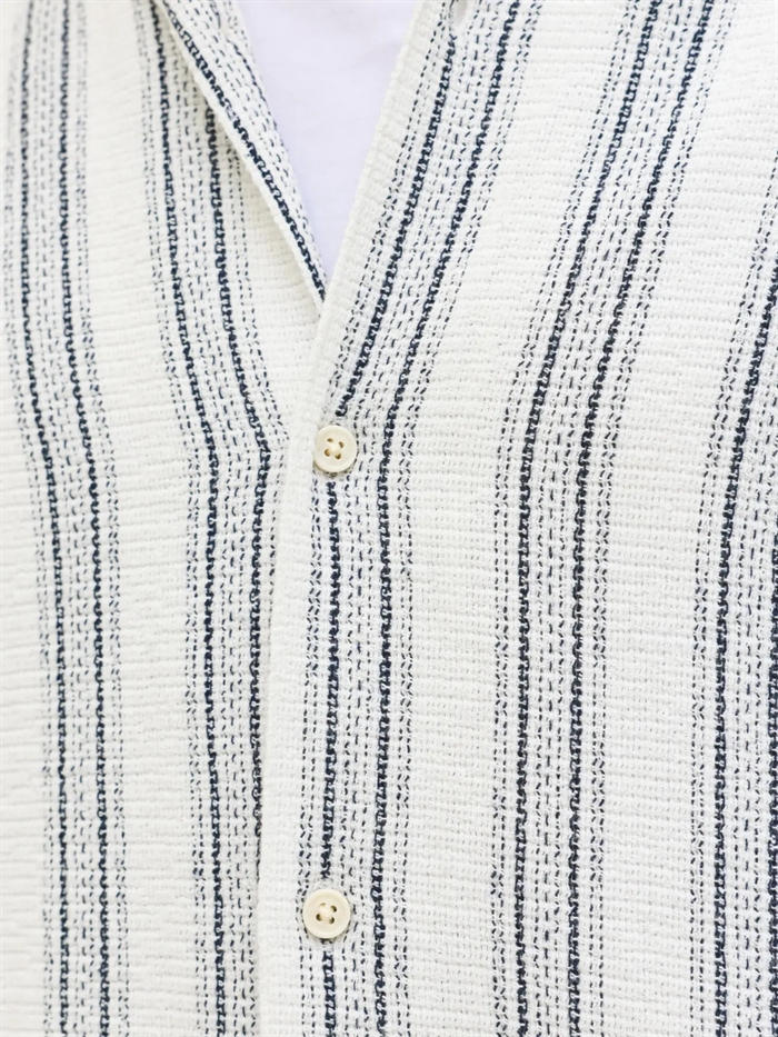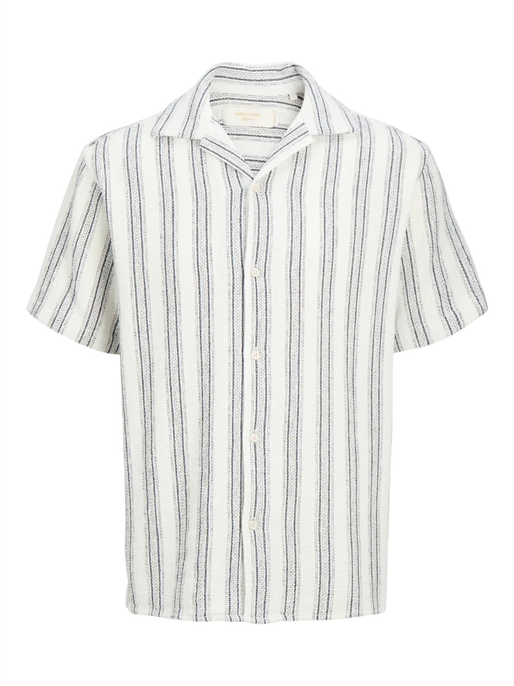 Jack & Jones Jorcoba Stripe resort SS Shirt - Cloud Dancer/Stripes