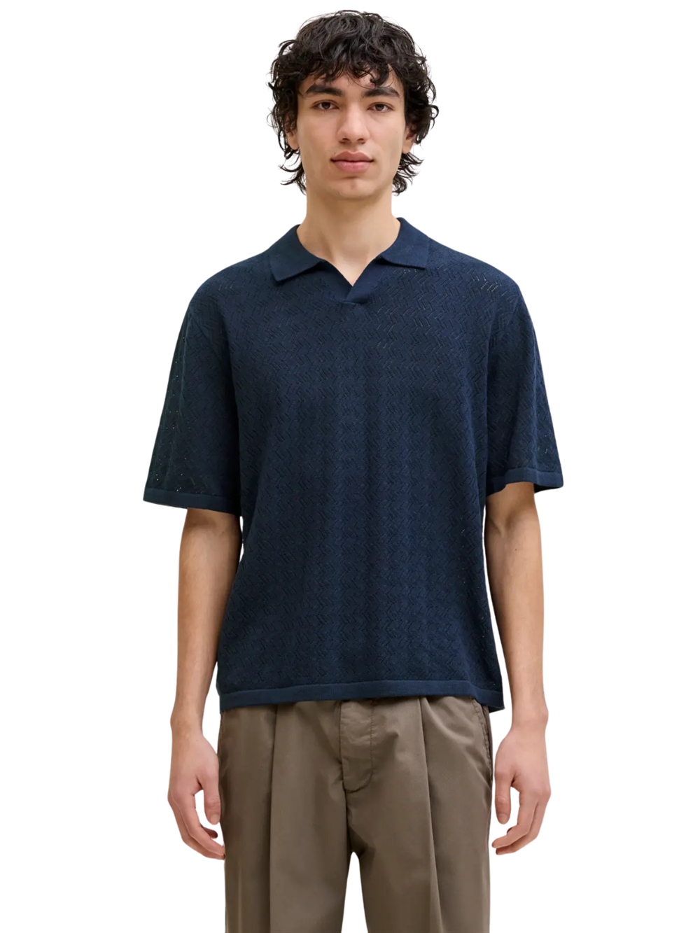 Jack & Jones Tyler knit s/s split neck poloshirt - Sky Captain