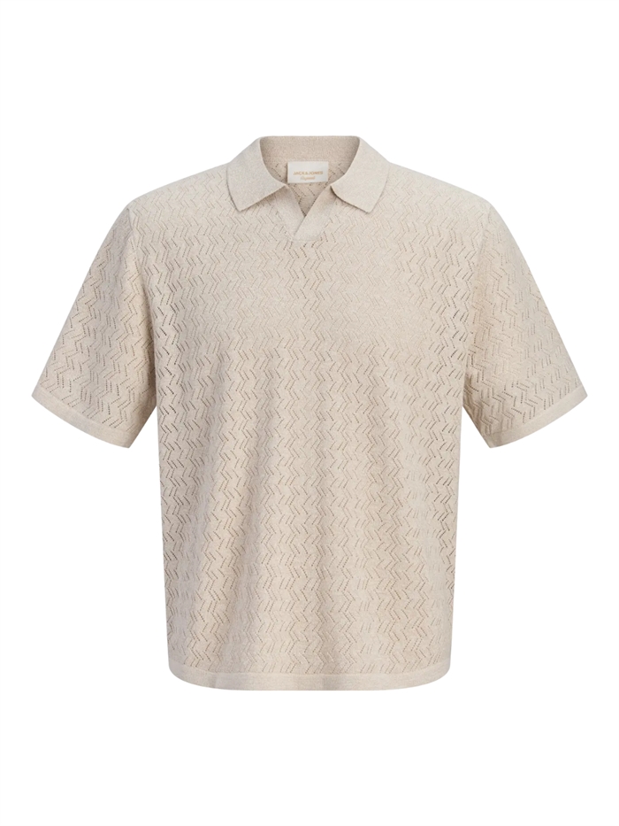 Jack & Jones Tyler knit s/s split neck poloshirt - Feather Gray