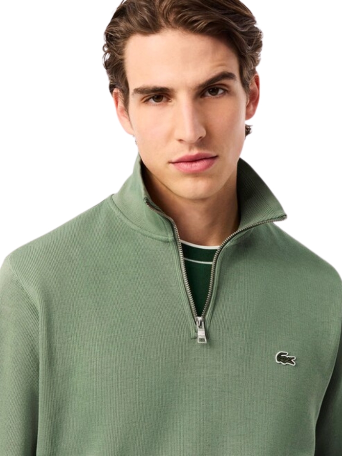 Lacoste High Neck Zipped Interlock Sweatshirt - Thyme Green