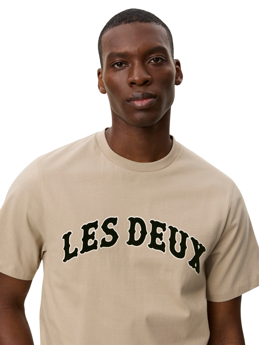 Les Deux Brady Western T-shirt i farven Dark Sand er en stilren og moderne T-shirt med et tydeligt western-inspireret udtryk. Den er lavet i en blød bomuldsblanding og har et markant "Les Deux" print på brystet. Perfekt til dig, der ønsker en afslappet, men samtidig karakterfuld tilføjelse til garderoben.