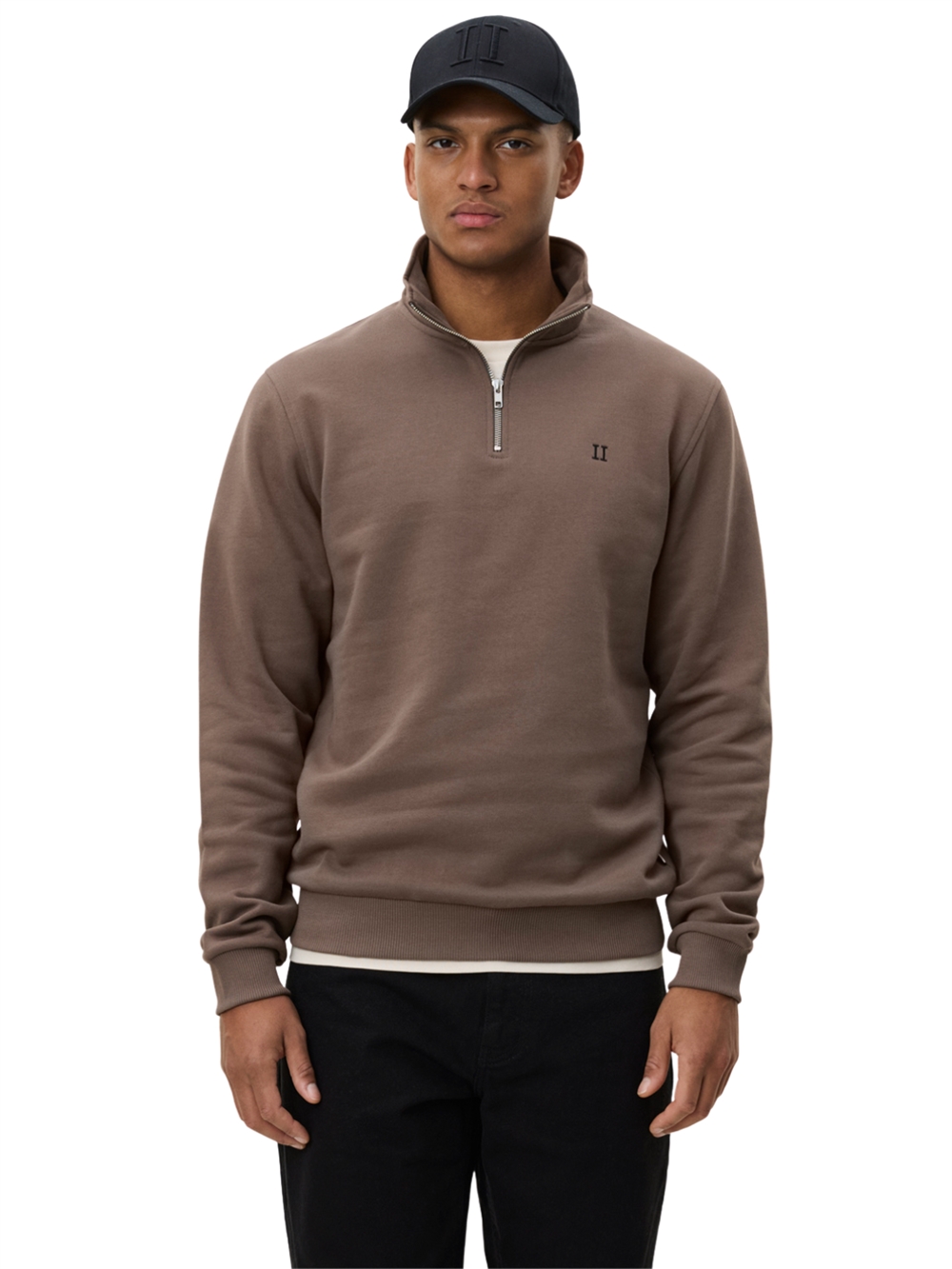 Les Deux Core Contrast Halfzip Sweatshirt - Mountain Grey Brown