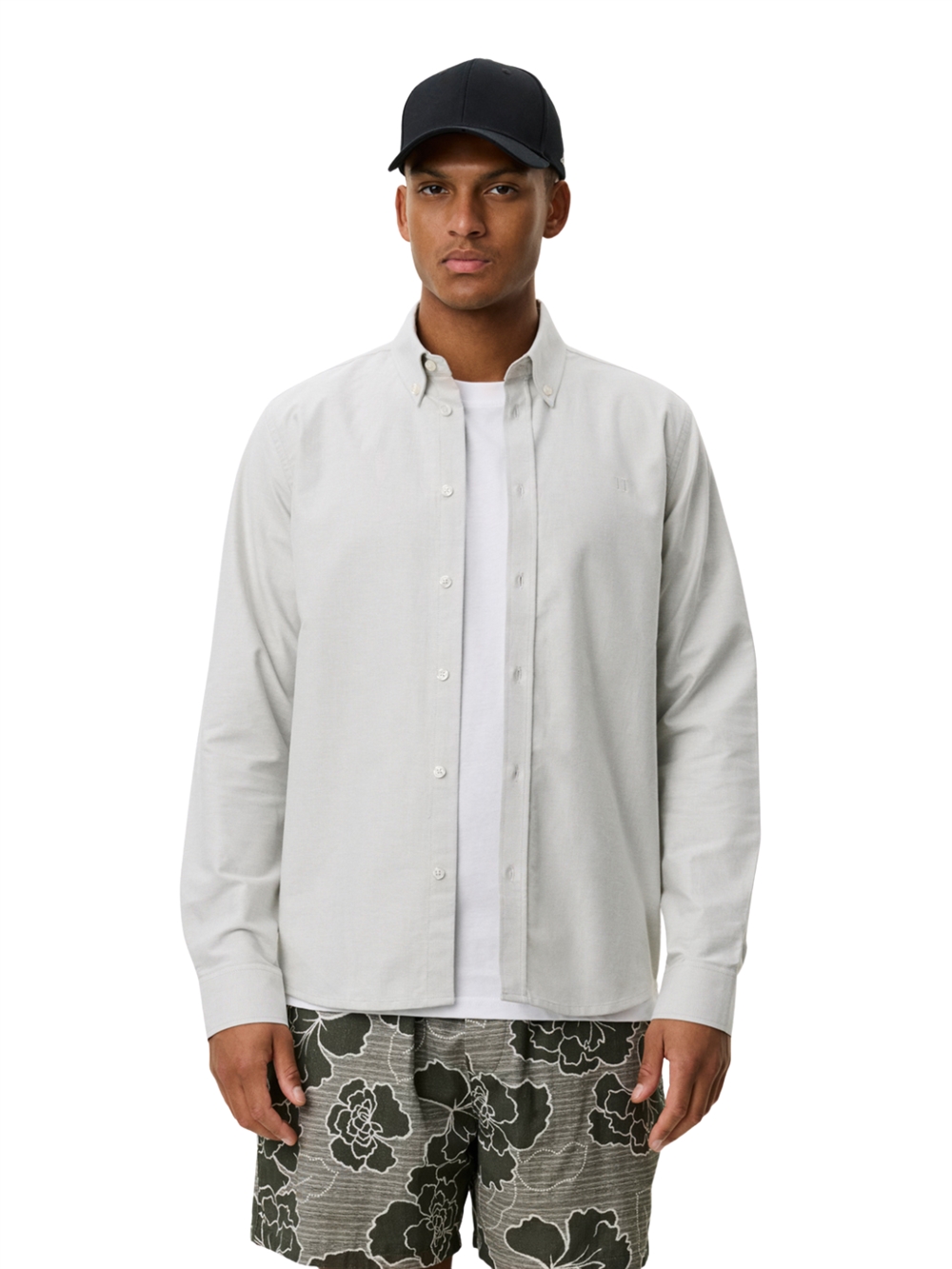 Les Deux Konrad oxford skjorte. En klassisk Oxford skjorte med lidt stretch for behagelig komfort hele dagen. Afsluttet med button down krave og et enkelt tonalt broderi på brystet.
