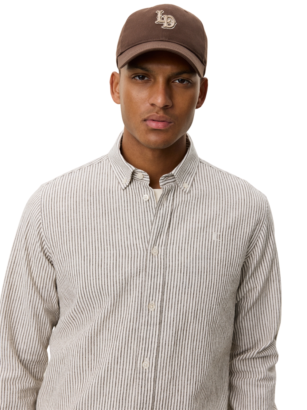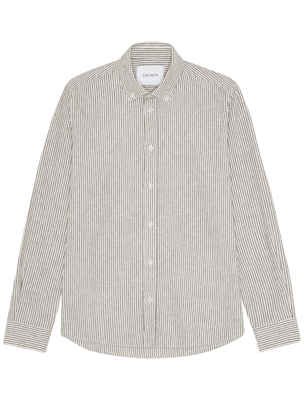Les Deux Konrad stribet bomuld/hør skjorte. En sommerlig version i Konrad serien. Denne model er lavet i sprød bomuld-linnedblanding med klassisk stribet mønster og lille tonalt broderi på brystet.