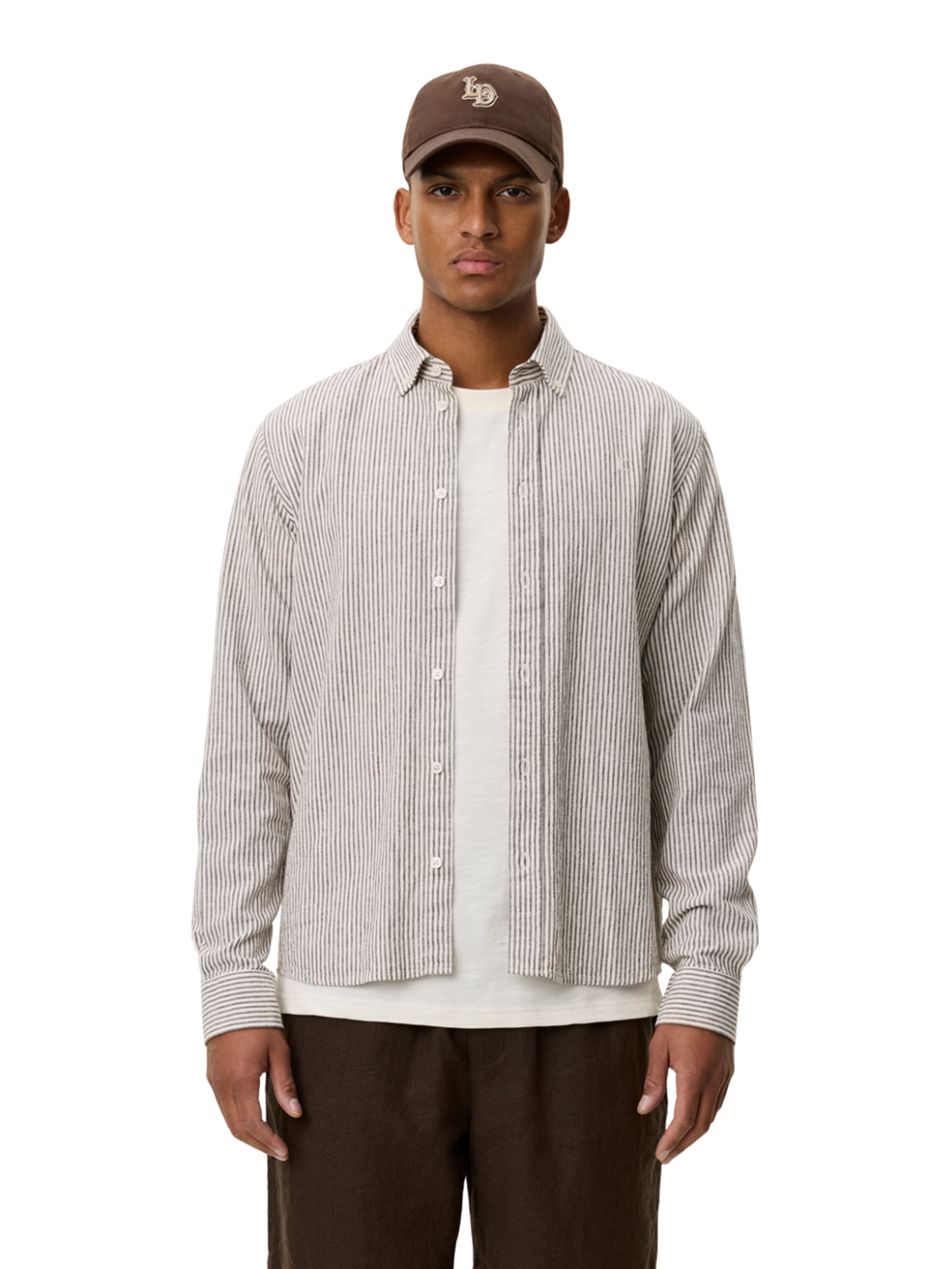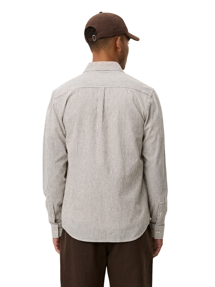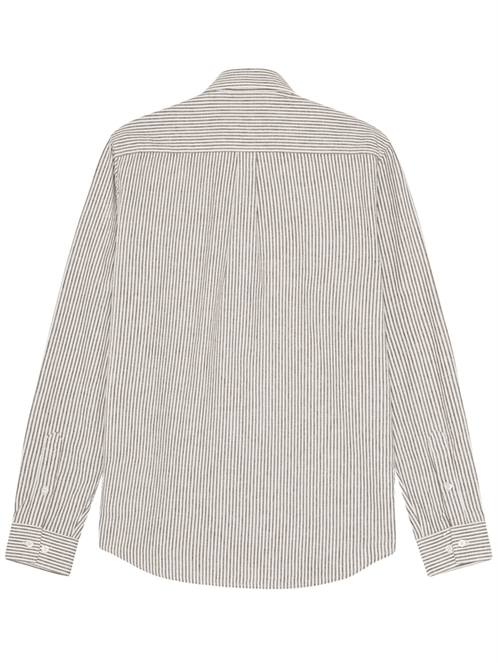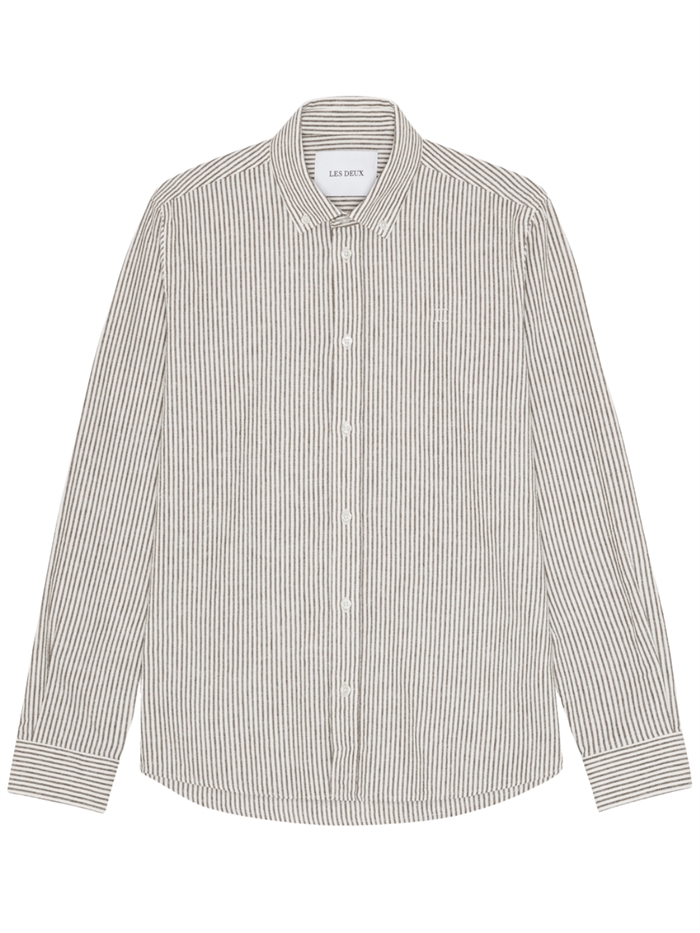Les Deux Konrad Stripe Cotton Linen Shirt - Teak Brown