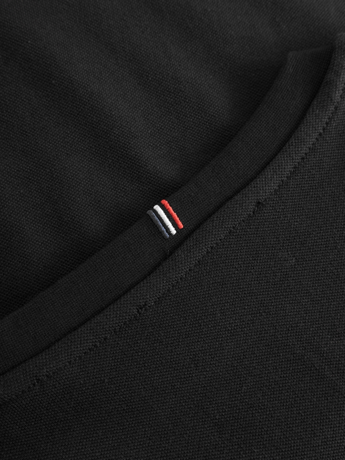 Les Deux pique t-shirt. En hybrid af polo og t-shirt. Denne T-shirt er lavet af piqué, det materiale, der bruges i poloshirts, har en afslappet Crewneck og er afsluttet med et broderet Encore på brystet.