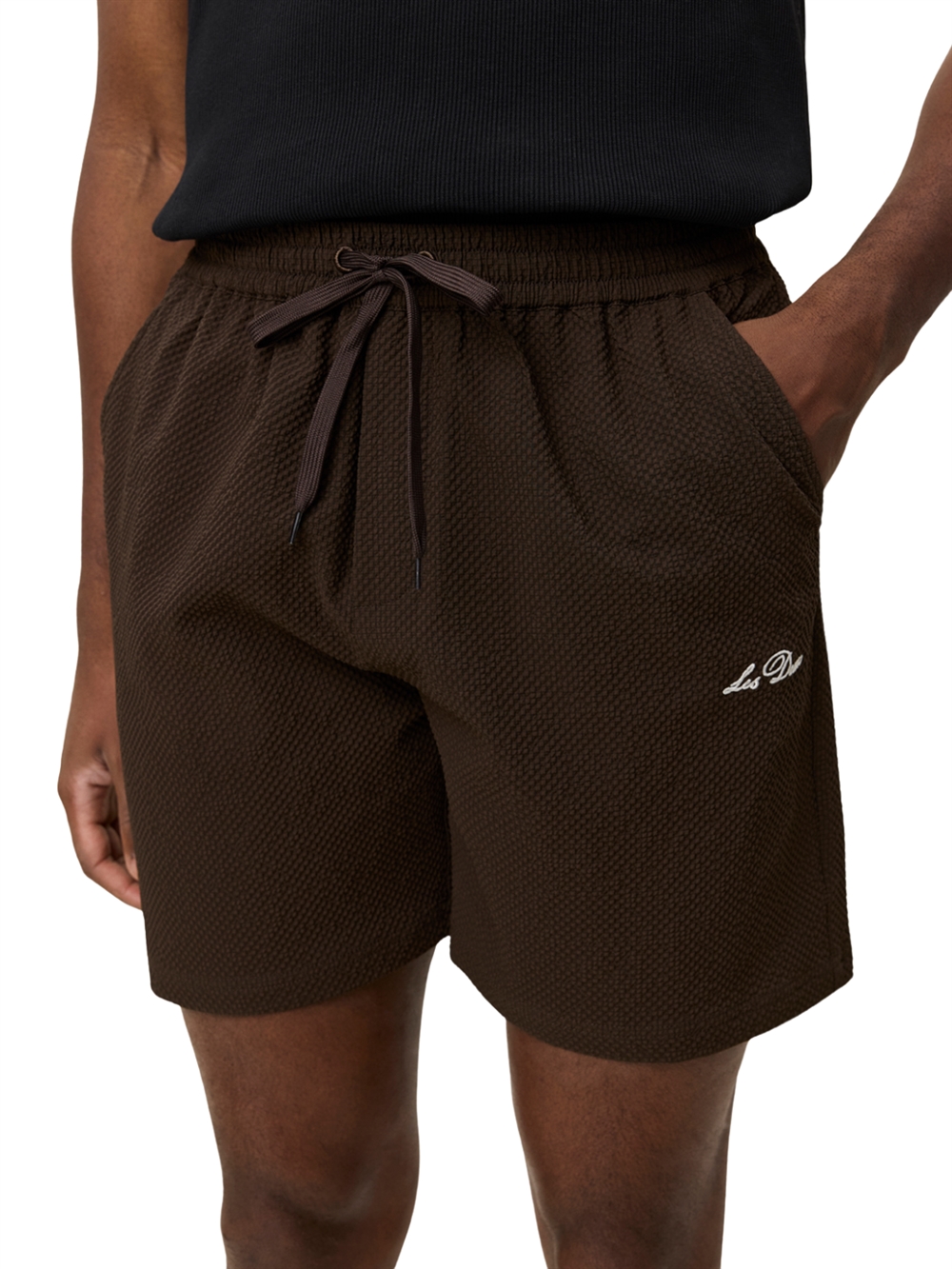 Les Deux seersucker badeshorts. Lette badeshorts i hurtigtørrende seersucker og med Crew Signature broderet på låret.