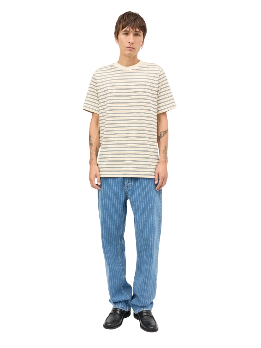 Mads Nørgaard Cotton Jersey Stripe Frode t-shirt - Vanilla Ice/Sky Captain/Zinnia