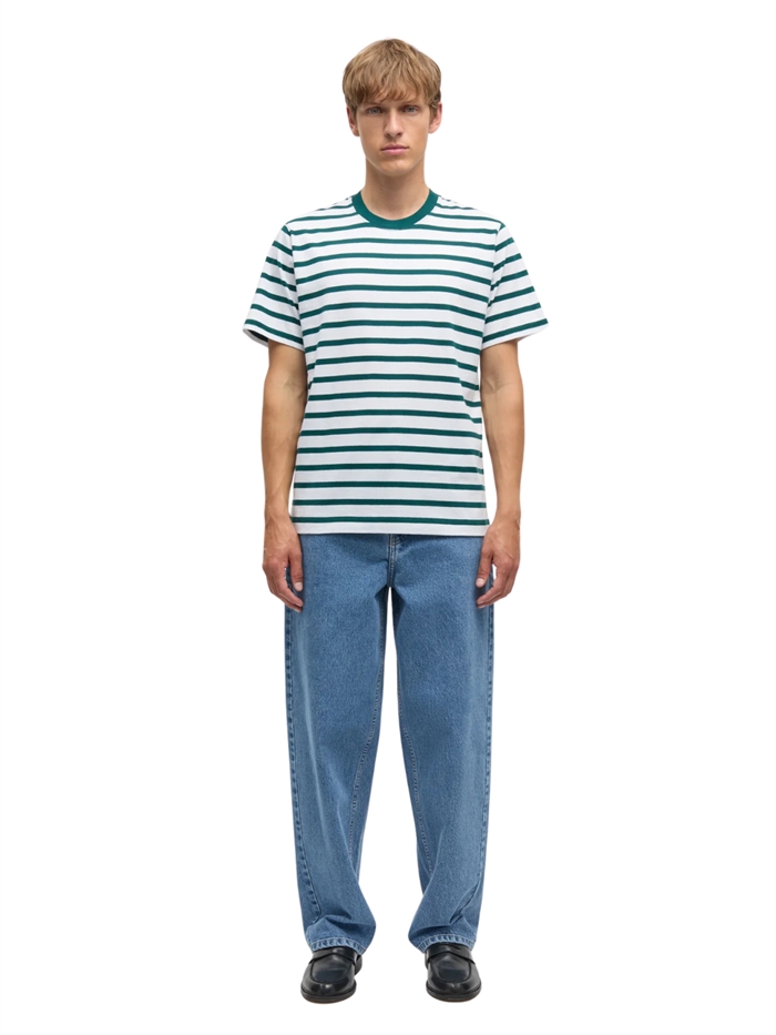 Mads Nørgaard Jersey stripe Frode t-shirt - Deep Sea / White