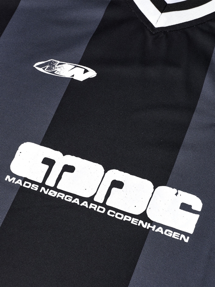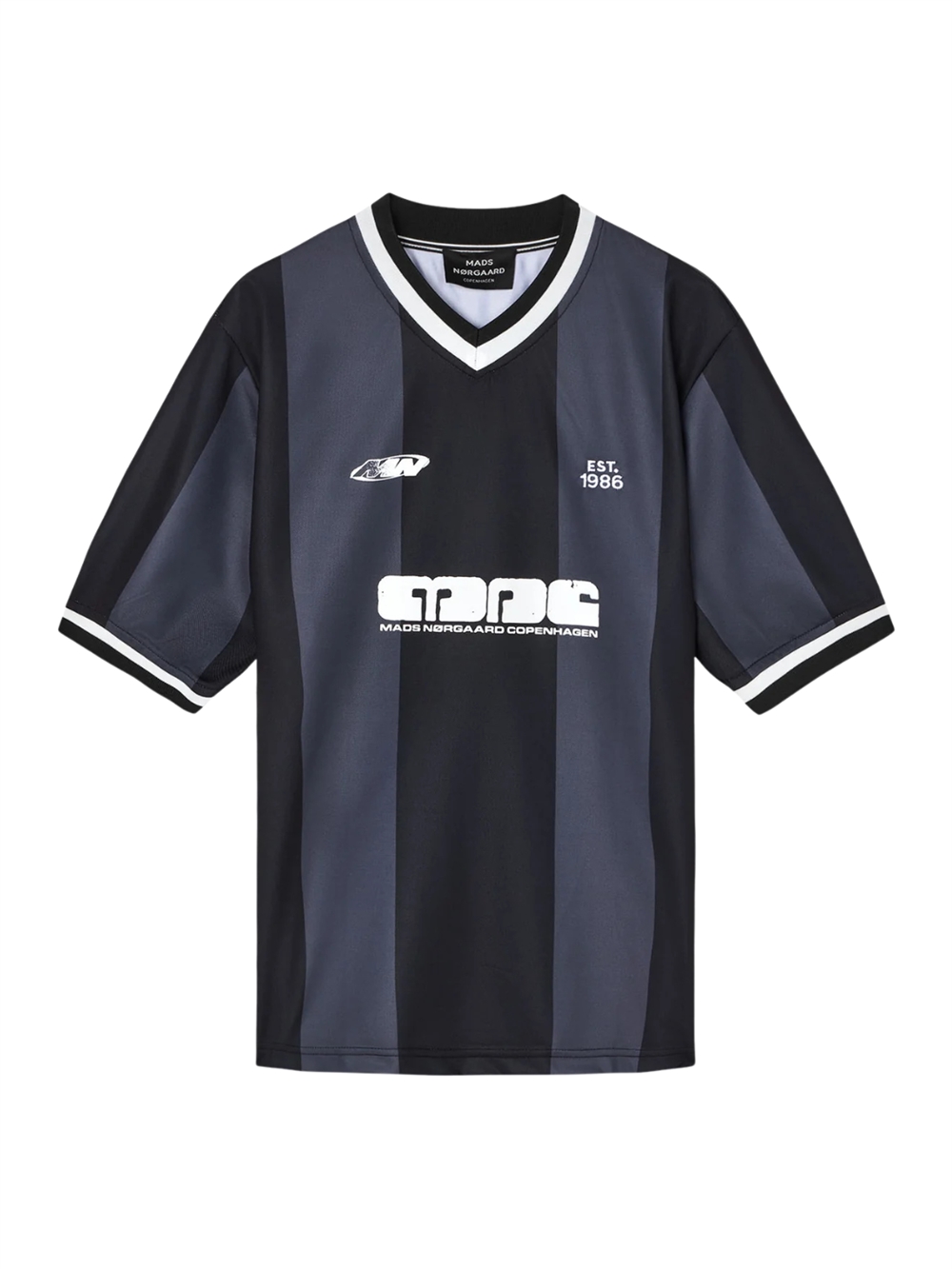 Fodbold inspireret T-shirt i reguler pasform med V-hals. Korte ærmer med kontrastkant. Stribet design og med logoprint foran.