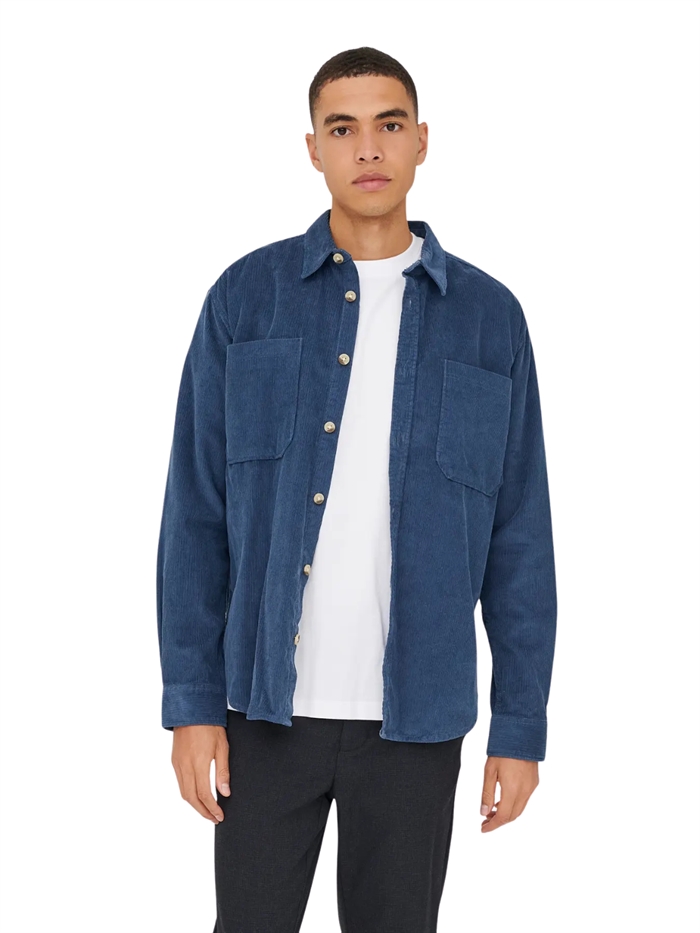 ONLY & SONS Alp RLX Washed Corduroy LS Shirt - Vintage Indigo