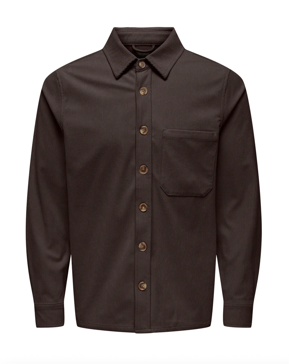 ONLY & SONS Tile Corduroy 0111 Shirt - Coffee Bean