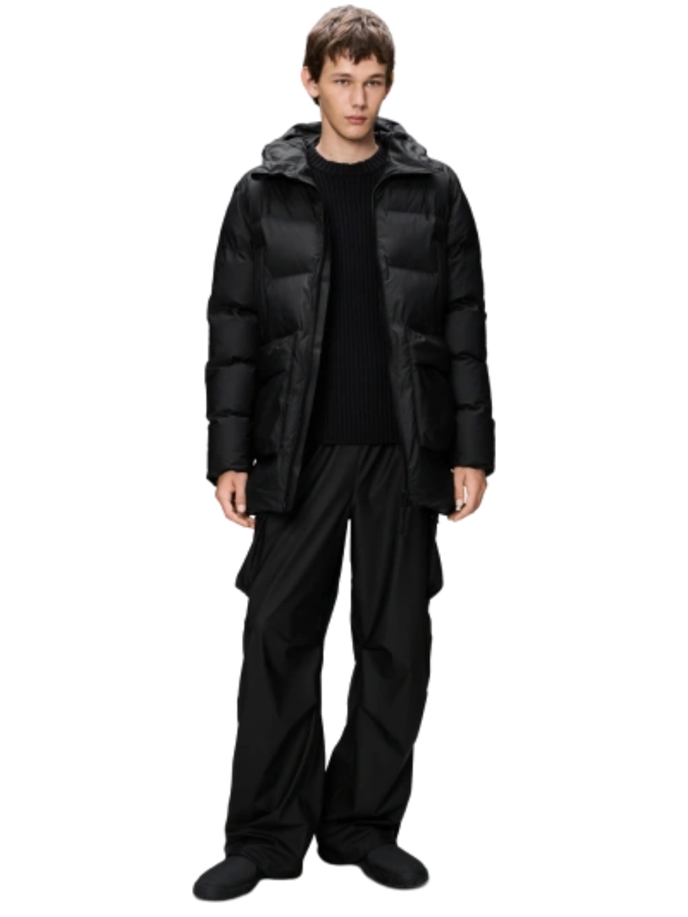RAINS Alta Long Puffer Cargo Jacket W3T4 - Black