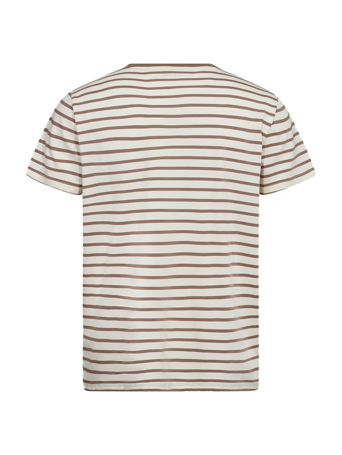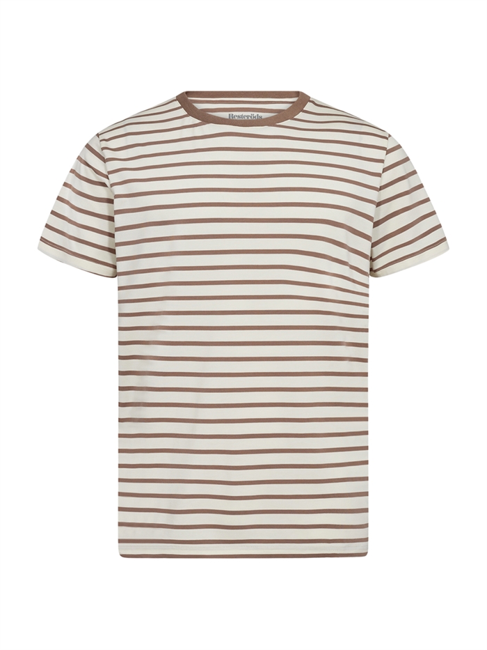 Resteröds Bambus r-neck t-shirt - Light Brown Stripe