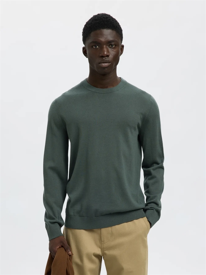 Selected Tray LS knit merino crewneck. Denne stilfulde langærmede striktrøje er lavet af blødt merinould, der giver komfort og varme til hverdagsbrug. Den klassiske crewneck-design og den neutrale kelp-farve gør den til en alsidig beklædningsgenstand, der nemt kan kombineres med både afslappede og mere formelle outfits. Perfekt til lag-på-lag eller som et selvstændigt stykke tøj, der både tilbyder stil og funktionalitet. Ideel til køligere dage.