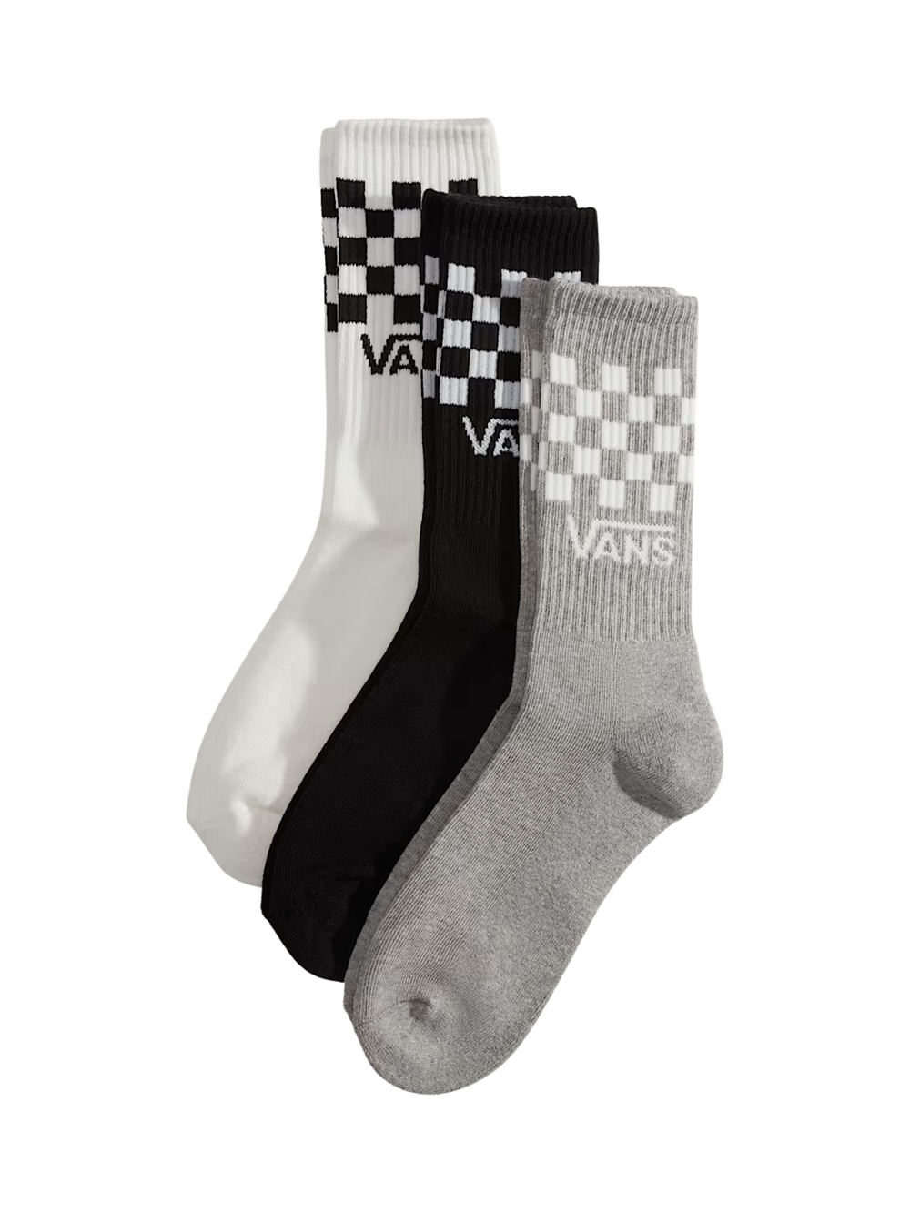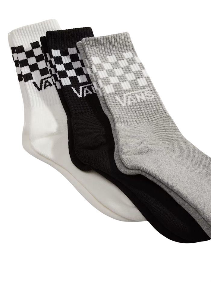 VANS Classic Check crew 3 pack socks - White/Grey/Black