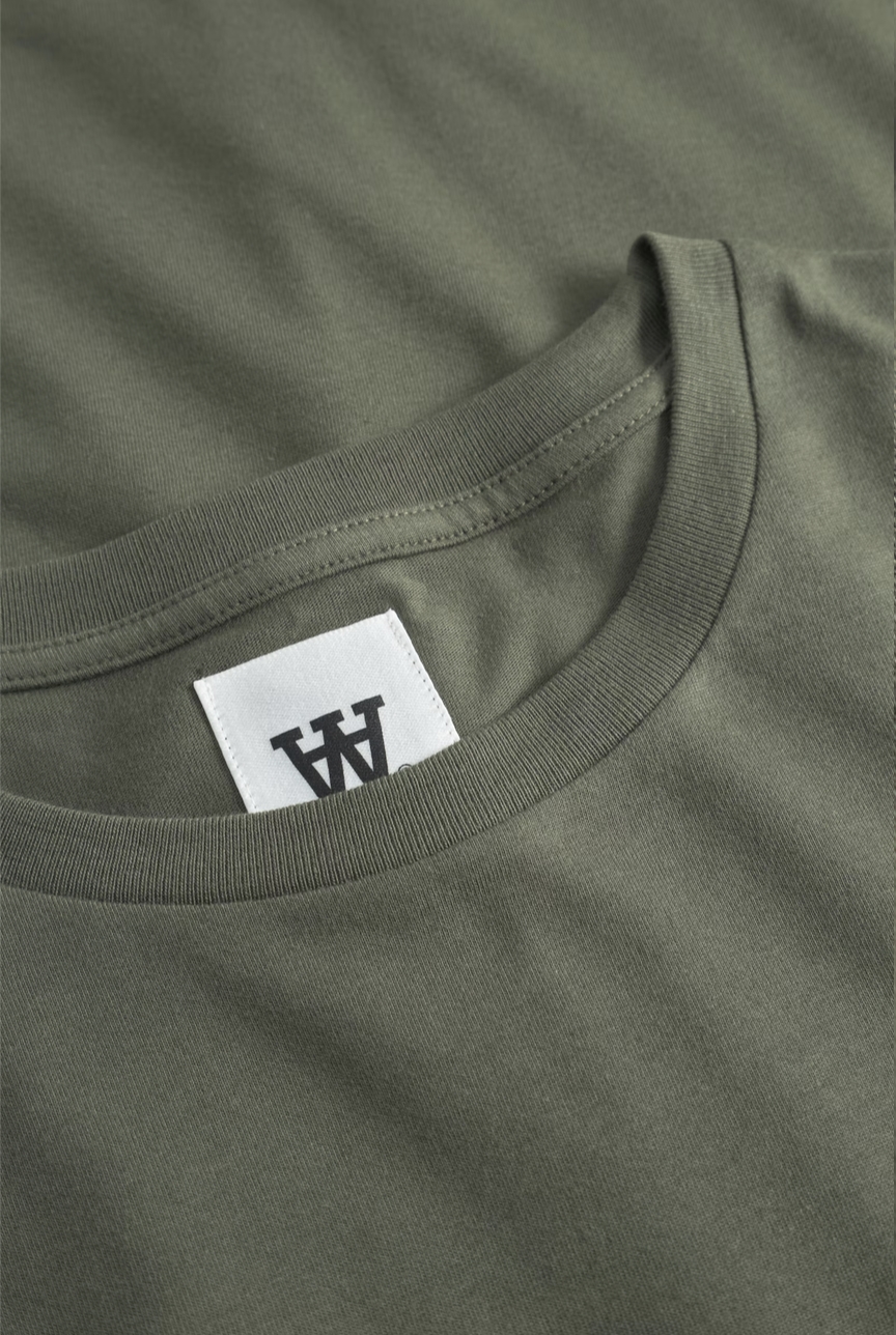 Klassisk og stilren T-shirt fra WOODWOOD i farven Grape Leaf, en dyb grøn. Fremstillet i blød bomuld med et diskret logo på brystet. Et alsidigt og komfortabelt valg til både hverdag og afslappede anledninger.
