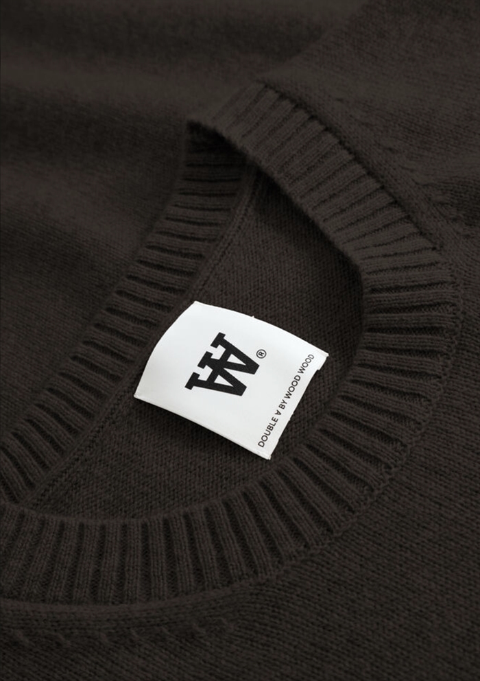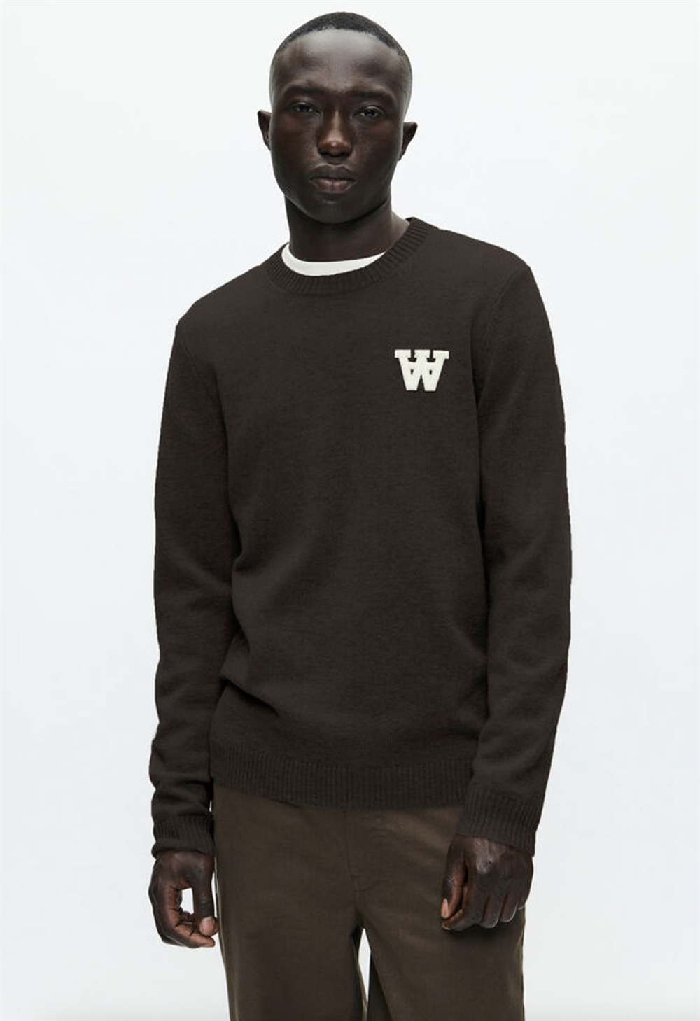Tay L Striktrøjen fra Wood Wood er en klassisk og alsidig sweater i en flot mørkebrun. Den er strikket i en blød og behagelig kvalitet, der gør den perfekt til kølige dage. Det minimalistiske design med det diskrete 'W'-logo på brystet giver et rent og moderne udtryk, der passer til både hverdag og mere formelle anledninger. Et stilrent valg til garderoben, uanset sæson.