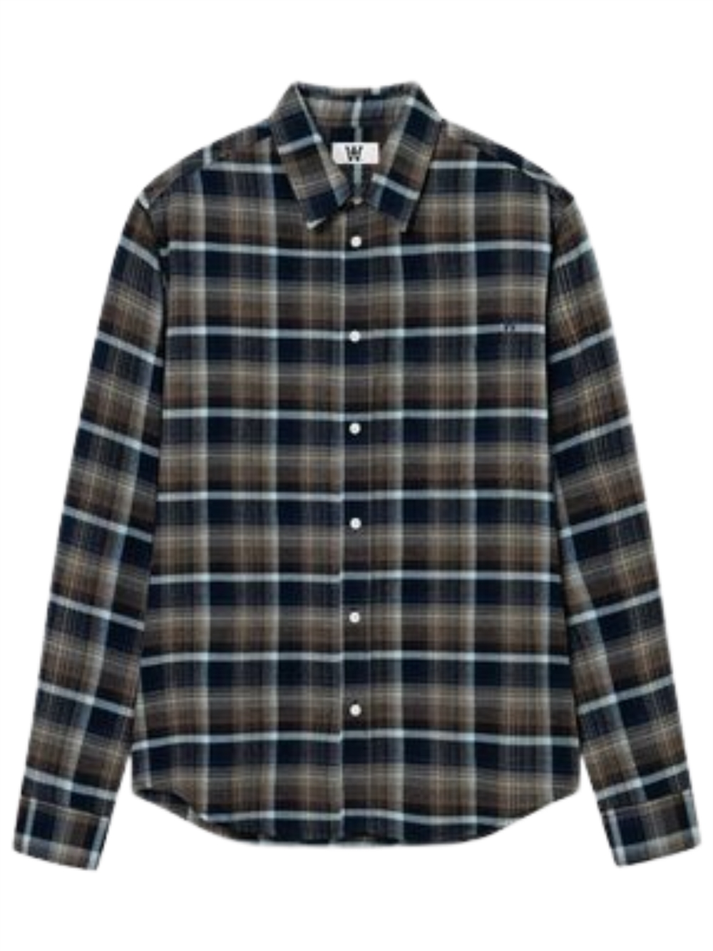 Wood Wood Cooper Shirt 25302 er en klassisk langærmet skjorte i et stilrent ternet mønster. Skjorten er lavet i blød og behagelig bomuld, som sikrer god komfort hele dagen. Den har en traditionel krave, knaplukning foran og manchetter med knapper. Et alsidigt design, der passer perfekt til både hverdagsbrug og mere formelle lejligheder.